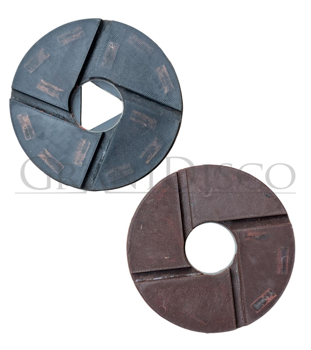 Coronas/platos de diamante para desbaste (granos "metálicos"), afinado y pulido (granos "resina") de granitos y piedras duras.