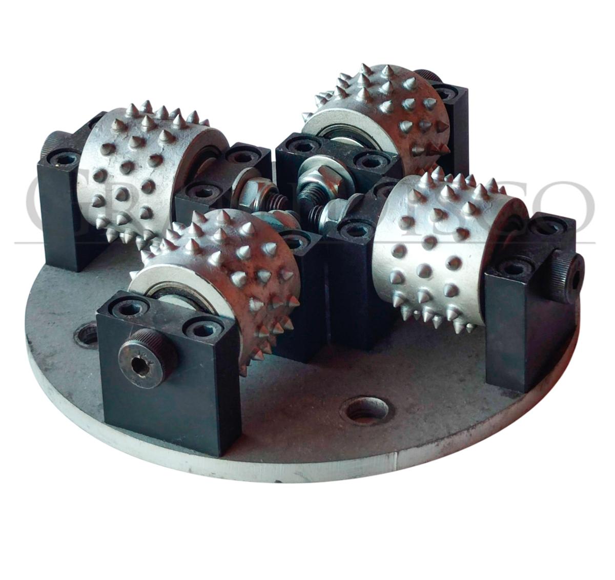 El plato tiene un diámetro de 200 mm. Está compuesto por 4 rodillos con 45 puntas de widia de 4 mm..